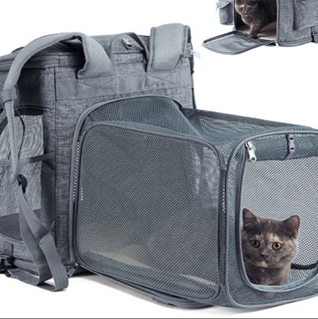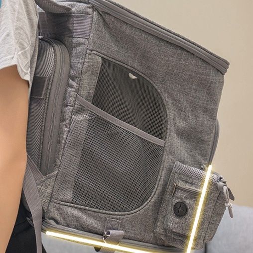 大切な猫とのお出かけに最適なペット キャリーです。 背負い型のリュックタイプで両手が自由に使え、長時間の移動も快適です。 側面と正面が拡張可能な設計で、猫が広々と過ごせる空間を確保できます。 通気性抜群のメッシュ素材を採用し、複数の空気穴で換気も万全です。 サイドポケットや収納スペースも充実しており、おやつや小物の持ち運びにも便利な多機能設計となっています。