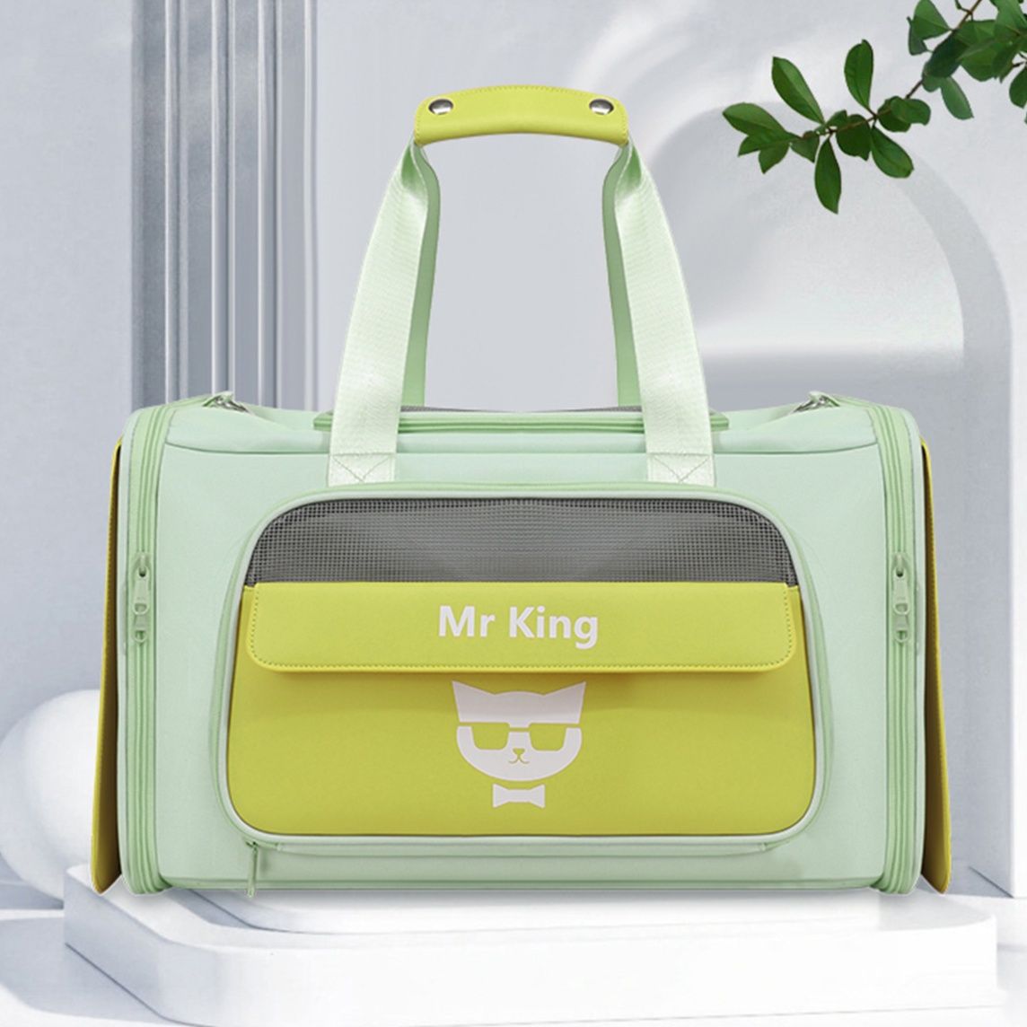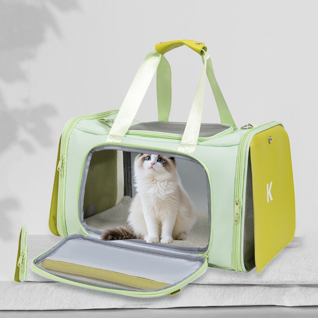 大切な猫との外出を快適にするペット キャリーです。 通気性抜群のメッシュ窓で猫が安心して過ごせる広々空間を実現しました。 調節可能なショルダーストラップと手提げハンドルの二通りで持ち運びが可能です。 前面が大きく開く設計で猫の出し入れもスムーズに行えます。 底面は安定感のある硬めの素材を使用し、長時間の移動でも型崩れしません。 通院やお出かけに最適なペット キャリーです。