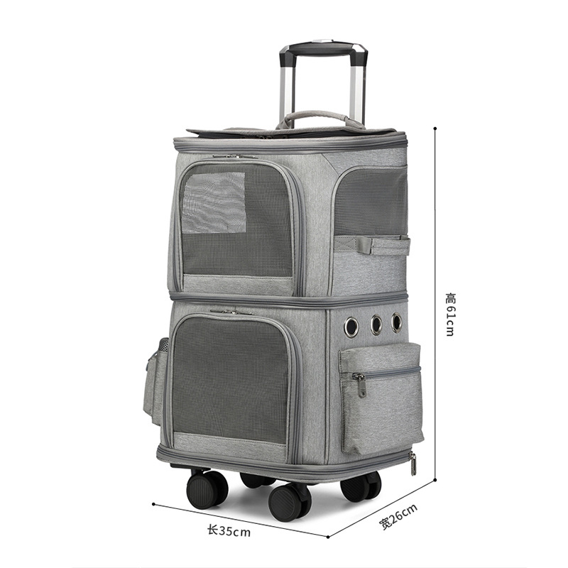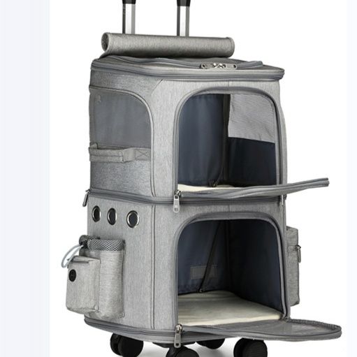 猫との移動を快適にする二段式構造のペットキャリーです。 上下に分かれた空間設計で複数の猫や荷物の収納が可能です。 四輪キャスターと伸縮ハンドル付きで移動が楽々できます。 メッシュ窓が通気性を確保し猫の様子を確認できます。 両サイドには小物収納ポケットも備え、病院やお出かけに便利な多機能設計です。