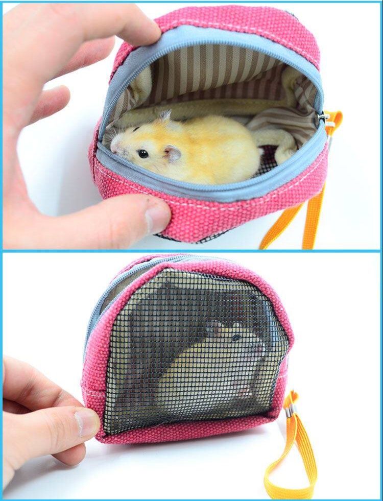 便利なストラップ付きで持ち運びしやすく、動物病院への通院や短時間の移動に便利なハムスター専用の携帯バッグです。