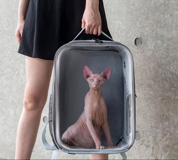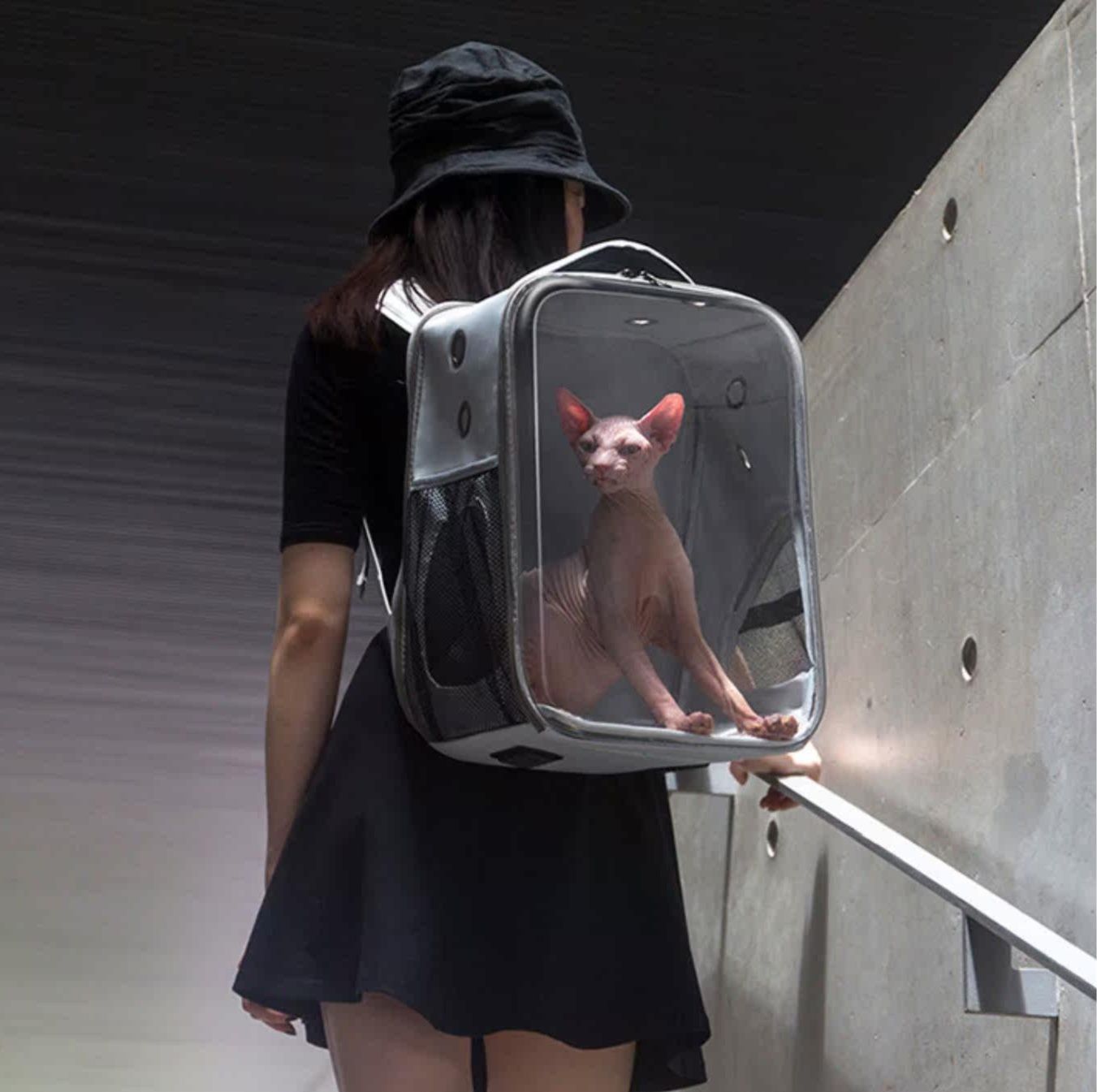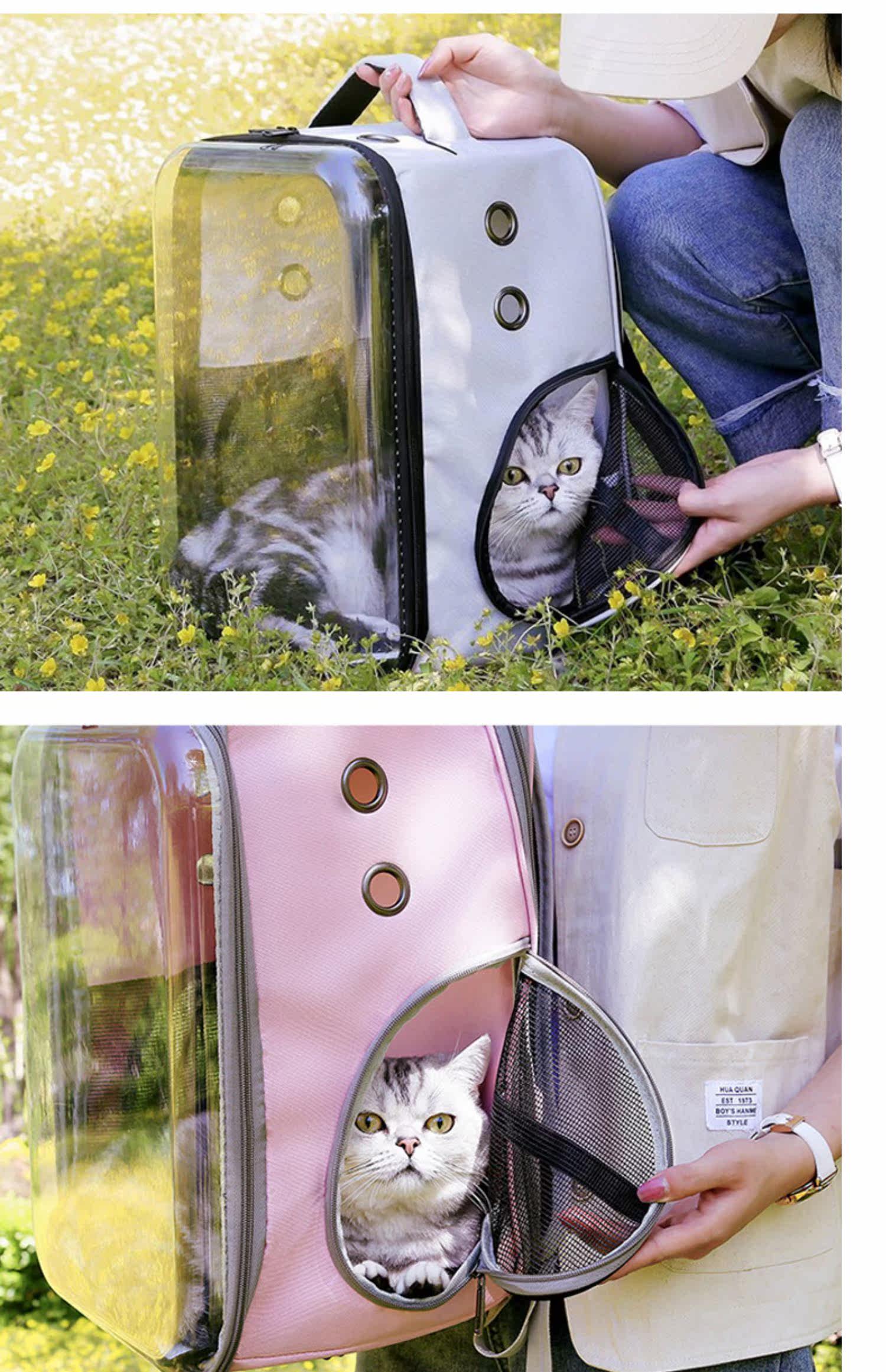 大切な猫との外出を快適にする透明窓付きのペット キャリーです。