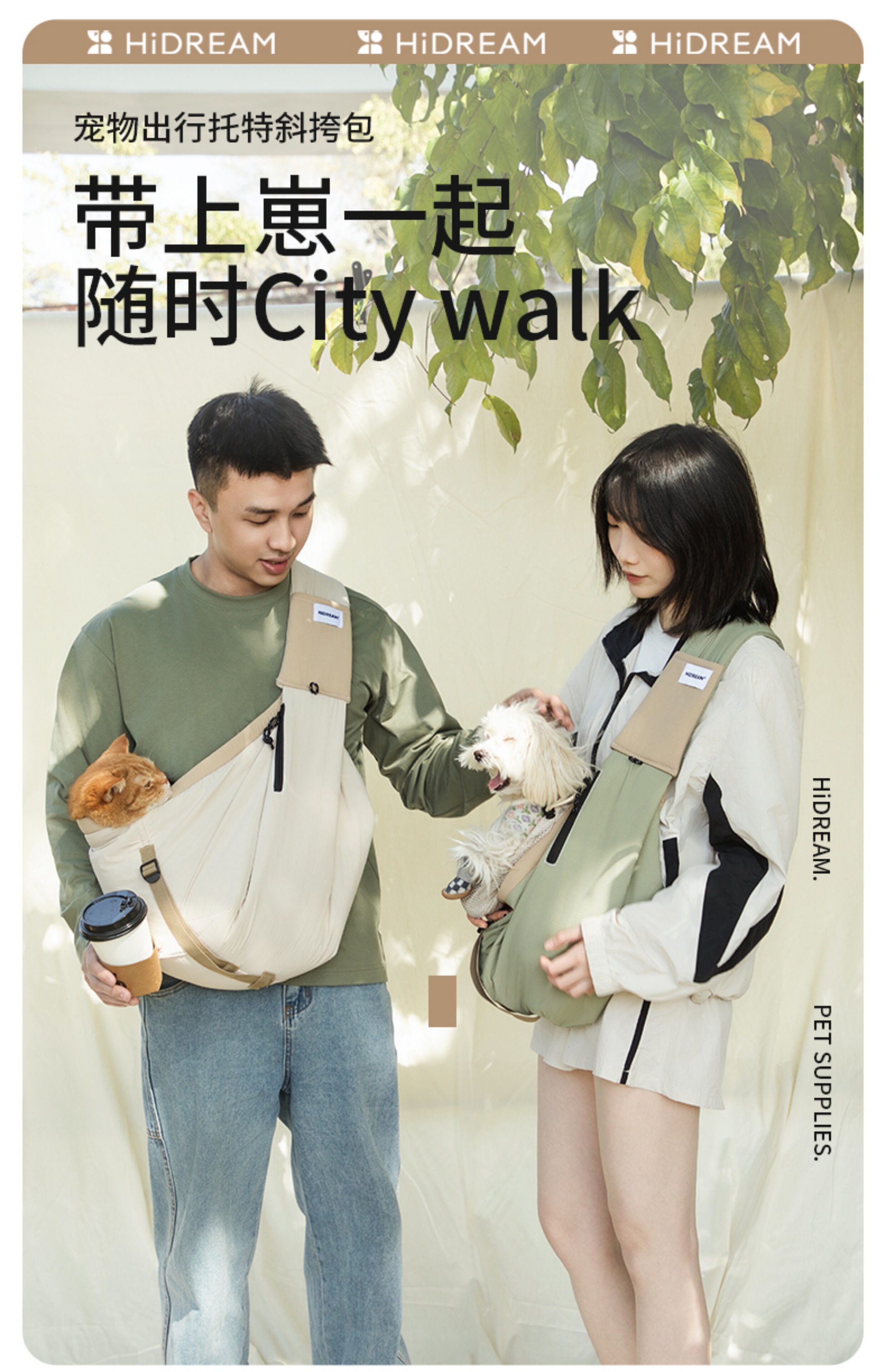 愛犬とのお出かけを快適にする斜め掛けタイプのペット キャリーです。